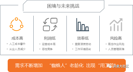 作为物业服务中的高空清洁板块,随着近几年国内高楼建设地增加而越发重要。目前,中国超100米以上的大楼2300幢排名世界第一,占全球85%的使用量,幕墙面积超15亿平方米,仅百米以上建筑的市场份额将超过90亿;到2020年,全球250米以上超高层建筑的数量将达到464座,预计幕墙清洗市场份额将超200亿。面对这样一个产值百亿的细分市场,上海霄卓机器人有限公司和重庆金沙1862cc管理有限公司发挥各自优势,通过对现代机器人技术与物业服务相结合的方式联合成立了——重庆霄卓金沙1862cc环保科技有限公司。
